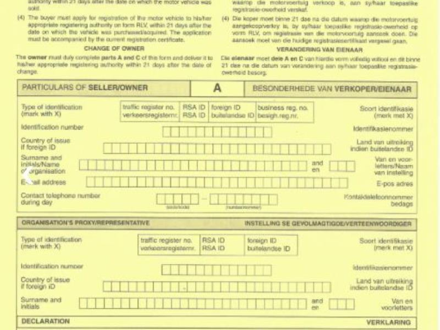 Once you and the vehicle owner have agreed on the terms as well as the price, the owner needs to complete the notification of change of ownership form. The yellow form should be submitted to the Department of Transport by the seller to inform the department of the change of ownership. Only after the form is submitted will you be able to re-register the used or pre-owned vehicle in your name.