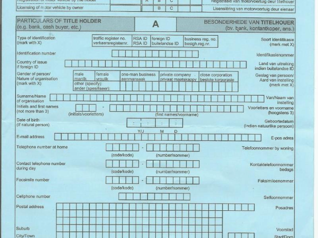 - The completed application form for registering and licencing a motor vehicle (RLV – Blue form)