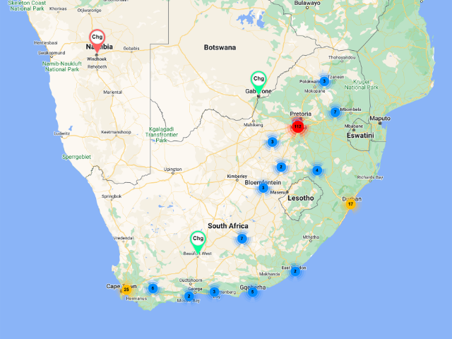 To get an idea of the network coverage, follow this link to see a live, interactive map courtesy of GridCars, the main service provider to the South African charging network.