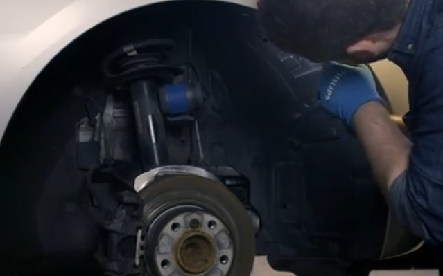 1. Turn the wheels, full lock, to the left or right, depending on the side you are working, or remove the wheel entirely.