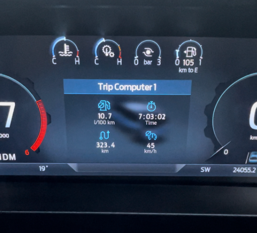 As for the above-mentioned 12.4-inch infotainment system, SYNC4 has it all, and the graphics are crystal clear, with surround-view cameras using the screen as its display, and you would need those too because the Everest is not small. And in front of the driver's eyes, there's the 12-inch digital instrument cluster that displays what you want to see and know, in order of personal importance. In my case, I always want to keep an eye on fuel consumption, but we'll get to that part lower down in this review.