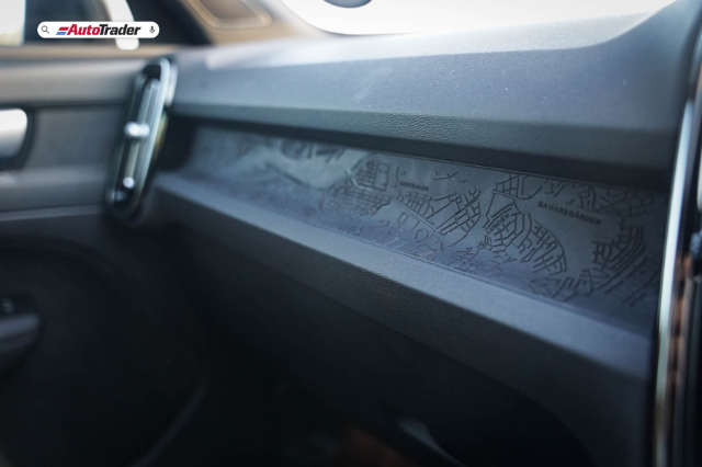 The front and rear bumpers are more visually appealing, and to complement the rear of the car, tailpipe details are kept smooth. The 19" 5-triple spoke Black diamond cut wheels add a tougher and more powerful look to the XC40. A fantastic addition to the interior styling is the map inlays that are backlit at night and recessed into the dashboard and door cards. It took us a while to find out that these are true-to-scale embossed aerial maps of the Swedish city Gothenburg and its surrounds, even featuring neighbourhood names.